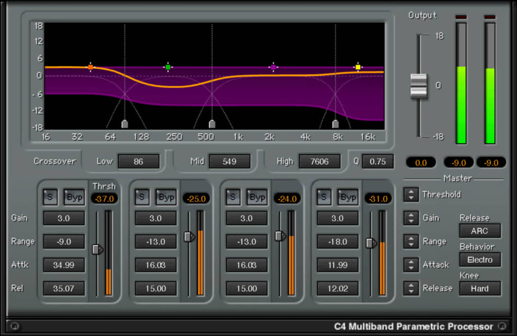 MaximusもC4もマスター・トラックに使っていますが、楽器パートの単体トラックにかけても良さそうです。音太くなるプラグインとは違うかもしれませんが、全体のまとまりが良くなる上にちょっと迫力が出ます。