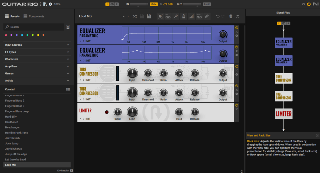 Maximusの“clear master rms”というプリセットを使っていますが、それだとちょっと音が引き締まる感じがします。表現が難しいですが、特に中音〜中低音くらいが“コリッ”っとするような印象です。C4は“basic multi”というプリセットを使うのですが、これは分かりやすく全体がまとまる感じ。高音域はまとまって聴きやすくなりますが、低音とかも丸っこくなっちゃうので好みが分かれるかもしれません。両方かけるとそれぞれの気になるところが相殺されるので、組み合わせて使うことが多いです。