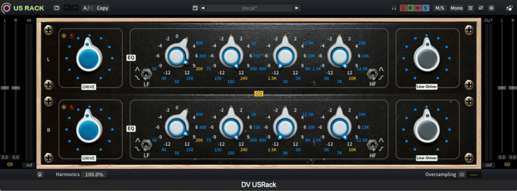 私が主に音をゴリゴリいじるのは職業柄(?)ボーカルなので、今回は人のボーカルの音作りに限った話をします。“音を太くする” と言っても様々な手法があると思います。このプラグインで得られる効果としては“歪み”、“目立ち”と言ったところでしょうか。歌モノでボーカルが浮かず、埋もれないようにすることは非常に重要であり、良き音源の条件とも言えます。US Rackは操作に少々コツは要るものの、比較的シンプルなUIで、周波数帯域ごとに心地良いアナログ機材を通したとき特有のドライブ感や音圧感を付与でき、音作りに大変重宝しています。ミックスが一段落して輪郭は確定したけど“何か足りない気がする”ときに、使うと音が程良くざらざらになり、完成時のイメージに近付きます。