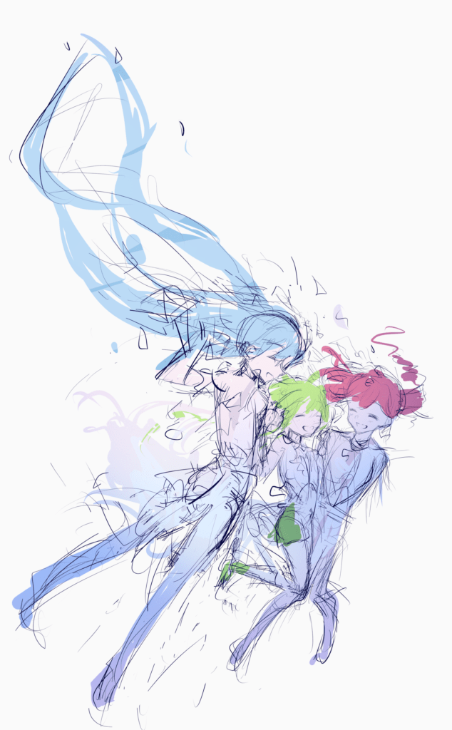 「のだ / ずんだもん・初音ミク・重音テト」ラスサビのイラスト途中過程