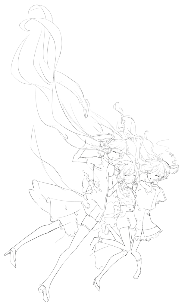 「のだ / ずんだもん・初音ミク・重音テト」ラスサビの線画